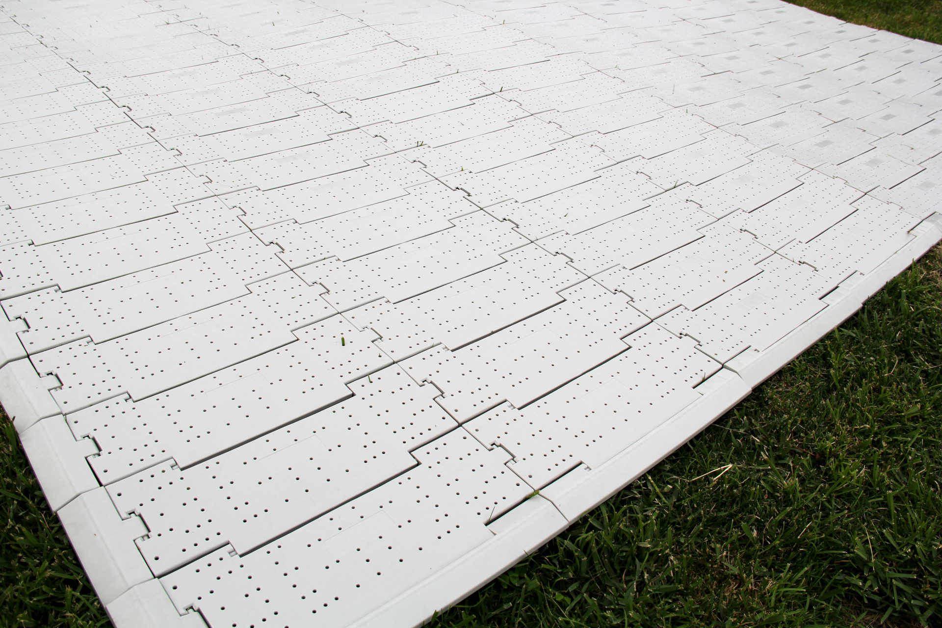 Schonend für den Untergrund: Die ovale Stützstruktur auf der Unterseite der Bodenplatten ist so konzipiert, dass ein optimaler Schutz des Untergrundes, z. B. Rasenfläche, gewährleistet wird.