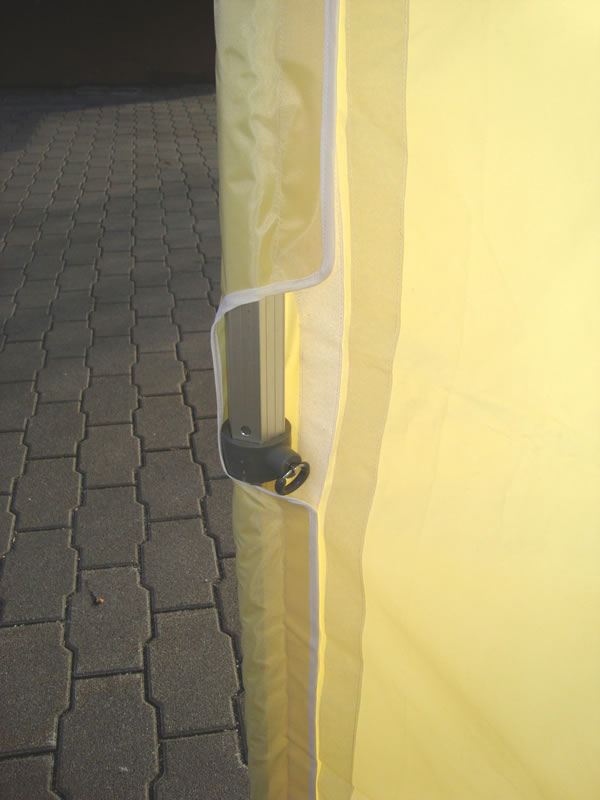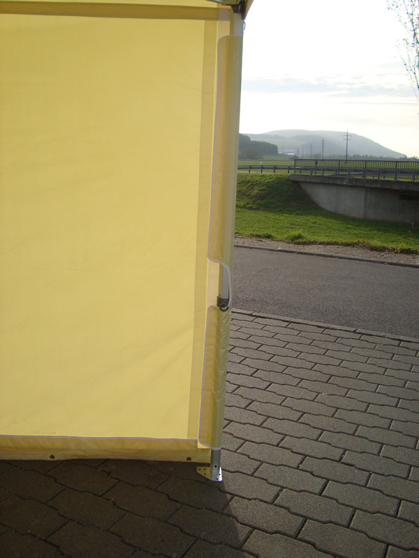 Diese Klettverschlusstechnik spart sehr viel Zeit und vereinfacht enorm das Handling der Seitenwände.