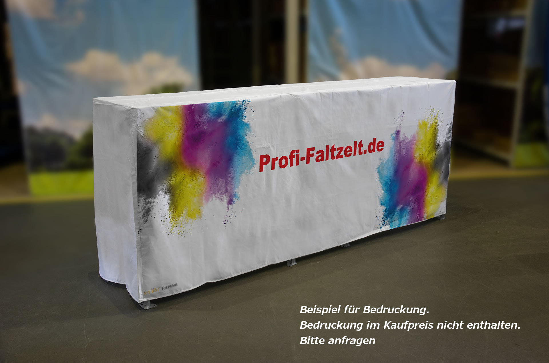 MVL-TENT® Husse ist sowohl mit individueller Bedruckung, als auch neutral in Farbe weiß (andere Farben siehe unten) lieferbar.