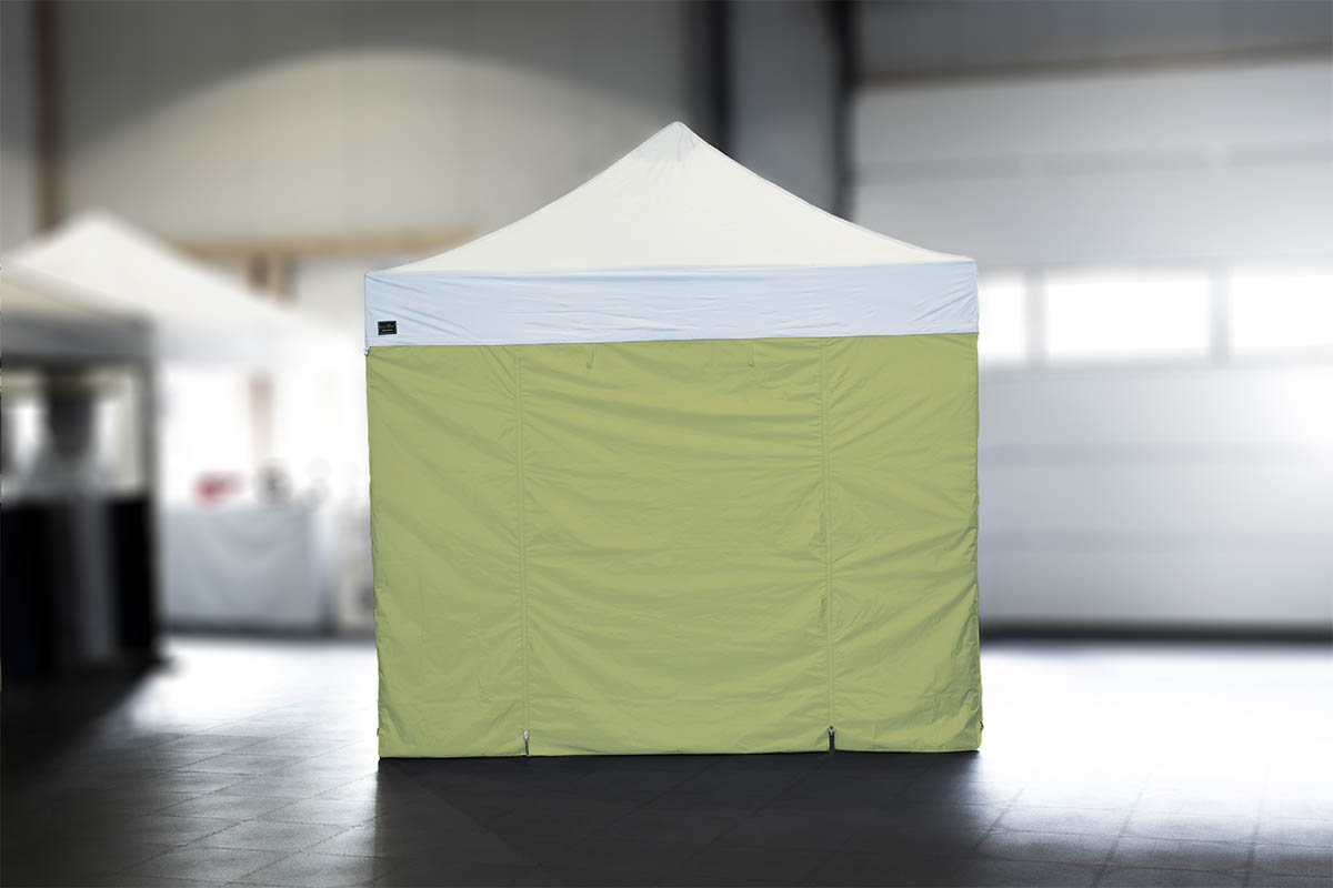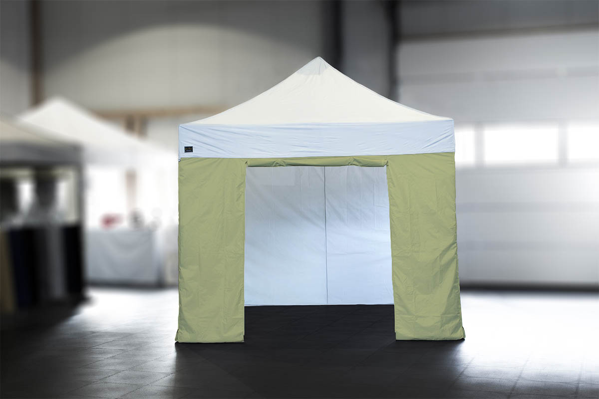 Ein weiterer Vorteil: die Standard-Seitenwände können in zwei verschiedenen Varianten am Faltpavillon angebracht werden: