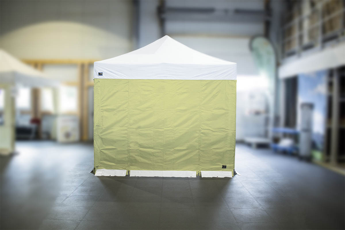 Dank der Klettverschluss-Technik lassen sich diese Seitenwände extrem schnell mit einander verbinden,