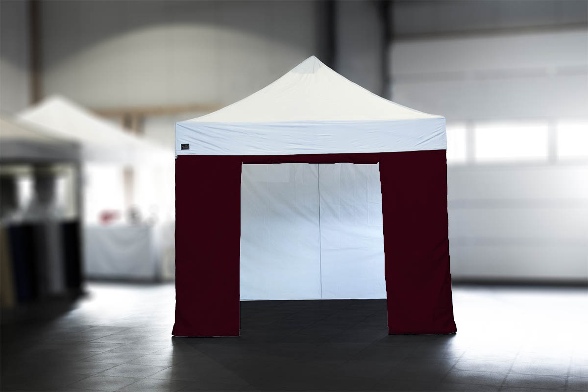 Ein weiterer Vorteil: die Standard-Seitenwände können in zwei verschiedenen Varianten am Faltpavillon angebracht werden: