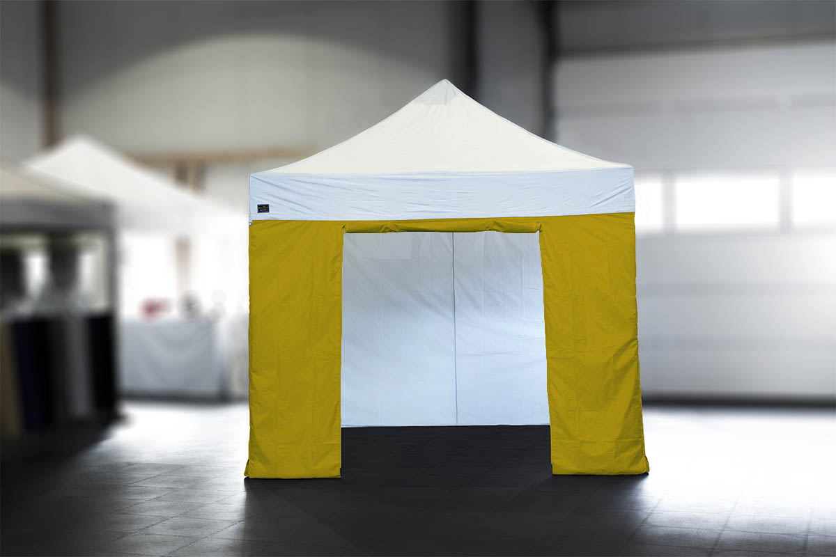Ein weiterer Vorteil: die Standard-Seitenwände können in zwei verschiedenen Varianten am Faltpavillon angebracht werden: