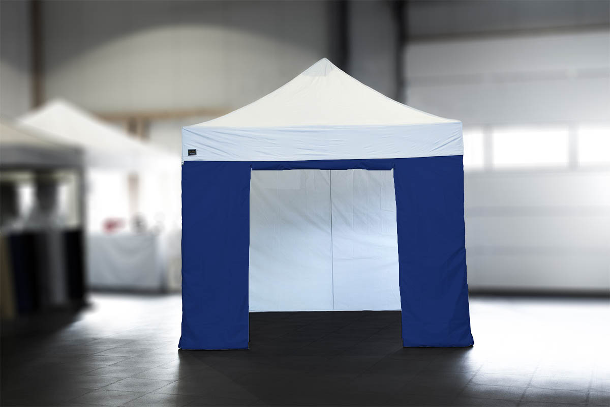 Ein weiterer Vorteil: die Standard-Seitenwände können in zwei verschiedenen Varianten am Faltpavillon angebracht werden: